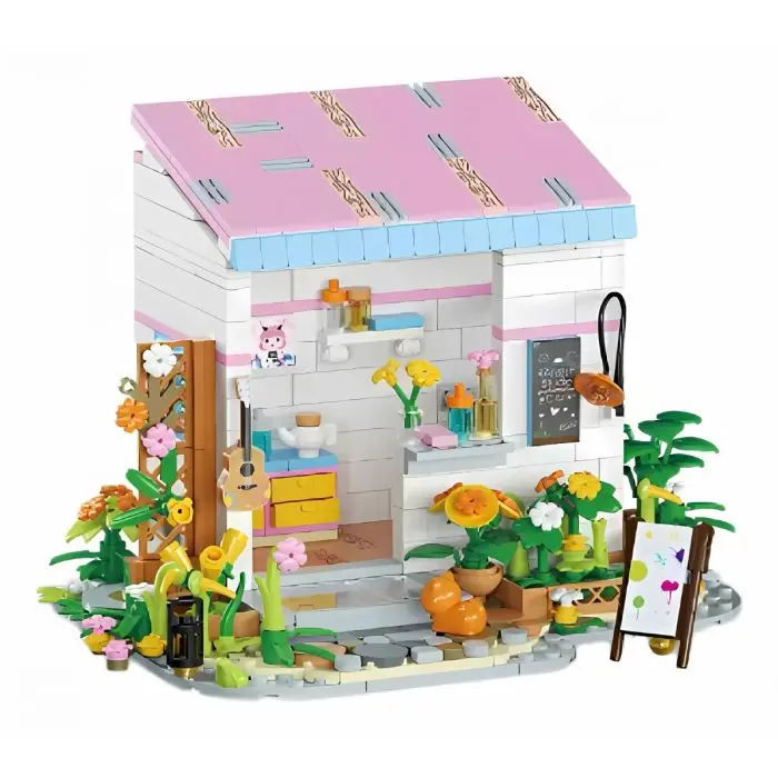 Este juego de bloques para armar te permite construir una encantadora casita llena de detalles: flores 🌸, muebles, instrumentos 🎸 y accesorios que hacen la experiencia aún más divertida.