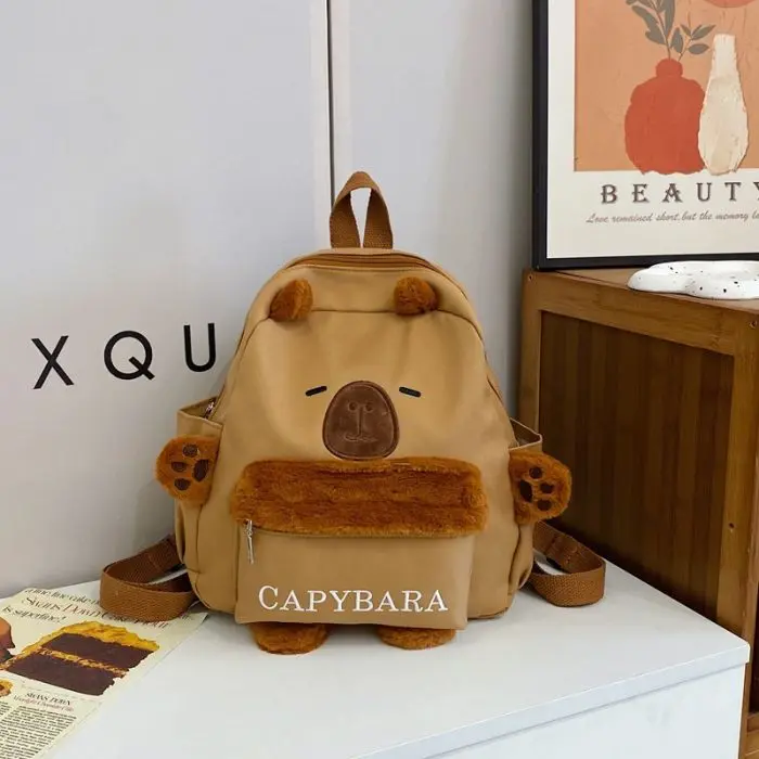 Esta mochila infantil de capibara combina diseño adorable con comodidad. Fabricada con materiales suaves y detalles peluditos, es ideal para los peques que aman los animalitos 🧸💛.