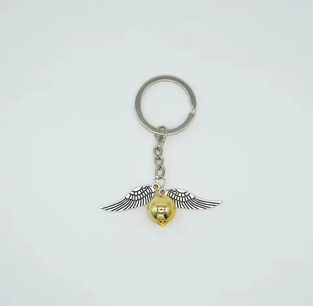 Su diseño metálico con alas detalladas y acabado dorado brillante lo convierte en un accesorio elegante y original, perfecto para tus llaves, mochila o para regalar a un verdadero fan.