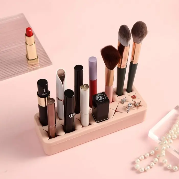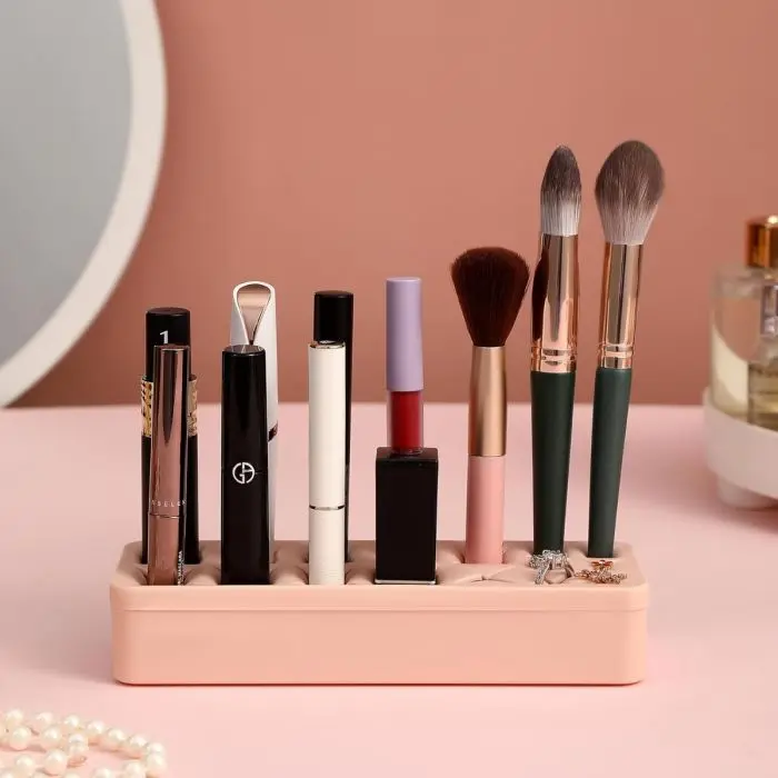 El pequeño compartimento cuadrado puede contener todo tipo de lápices de cejas, pinceles de sombra de ojos, aretes, etc.